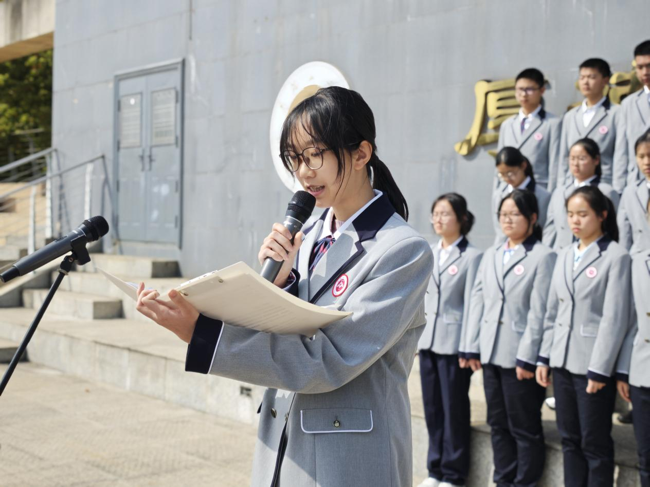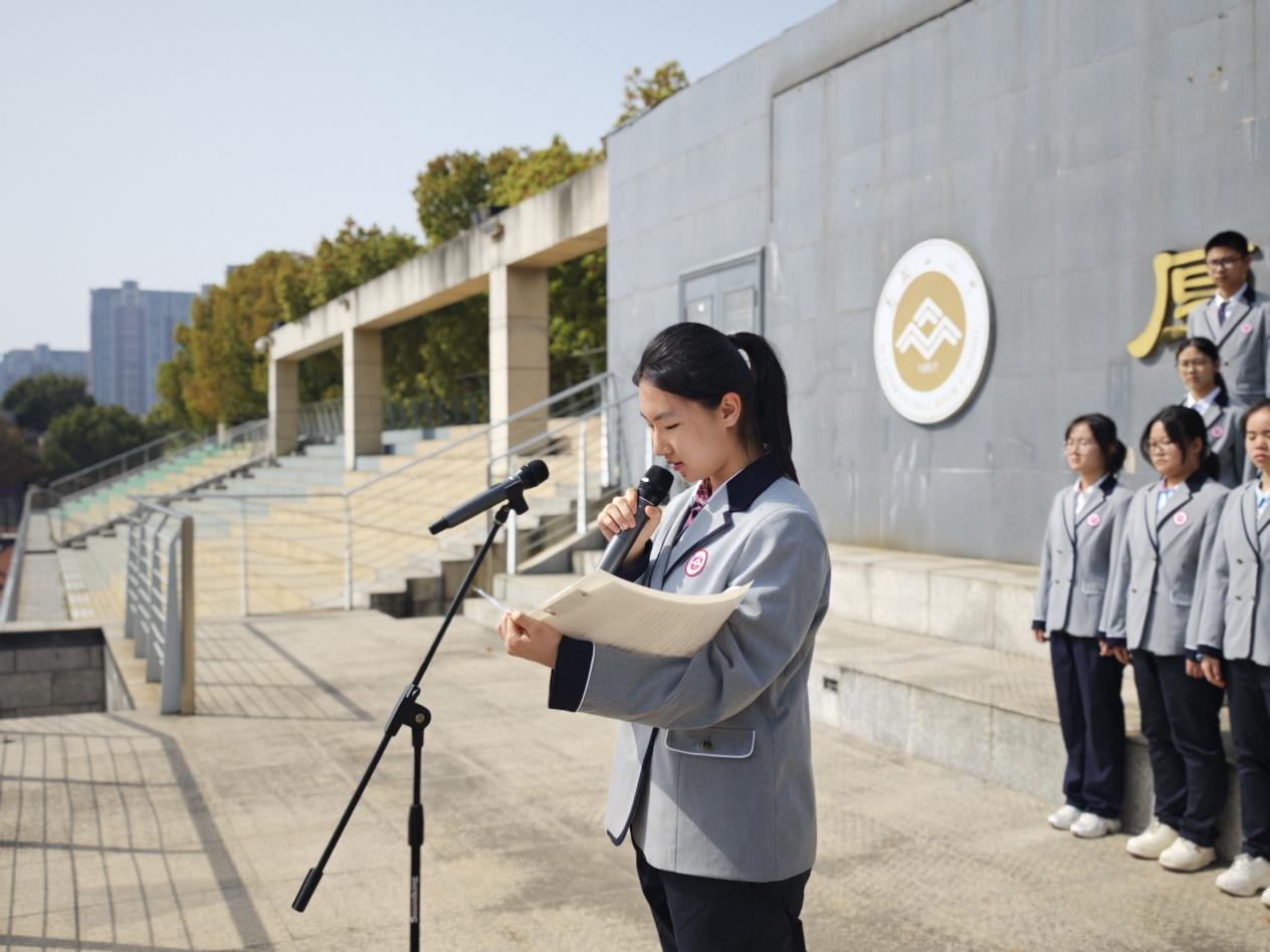 莊嚴的升旗儀式後,108班鄭瑜婧同學作國旗下講話。她向全(quán)體(tǐ)師生(shēng)介(jiè)紹(shào)了葉光富、李聰、李廣蘇三名航天員的英(yīng)勇事跡,回(huí)顧(gù)了(le)神舟十八號載人飛船成(chéng)功發射這一激(jī)動人心的曆史時刻,三位(wèi)航天英雄的偉大壯舉不僅書寫了中國航天的(de)輝煌篇章,更為91视频网站莘莘學子點亮了一盞精神的明燈。最(zuì)後她以航天員“特別能吃苦、特別能戰鬥、特別能攻關、特(tè)別能奉獻”的精神倡議同學們,以航天精神為帆,在學業中錘煉“分(fèn)秒不差”的嚴(yán)謹,用汗水鑄就光芒,實現自己的夢想。